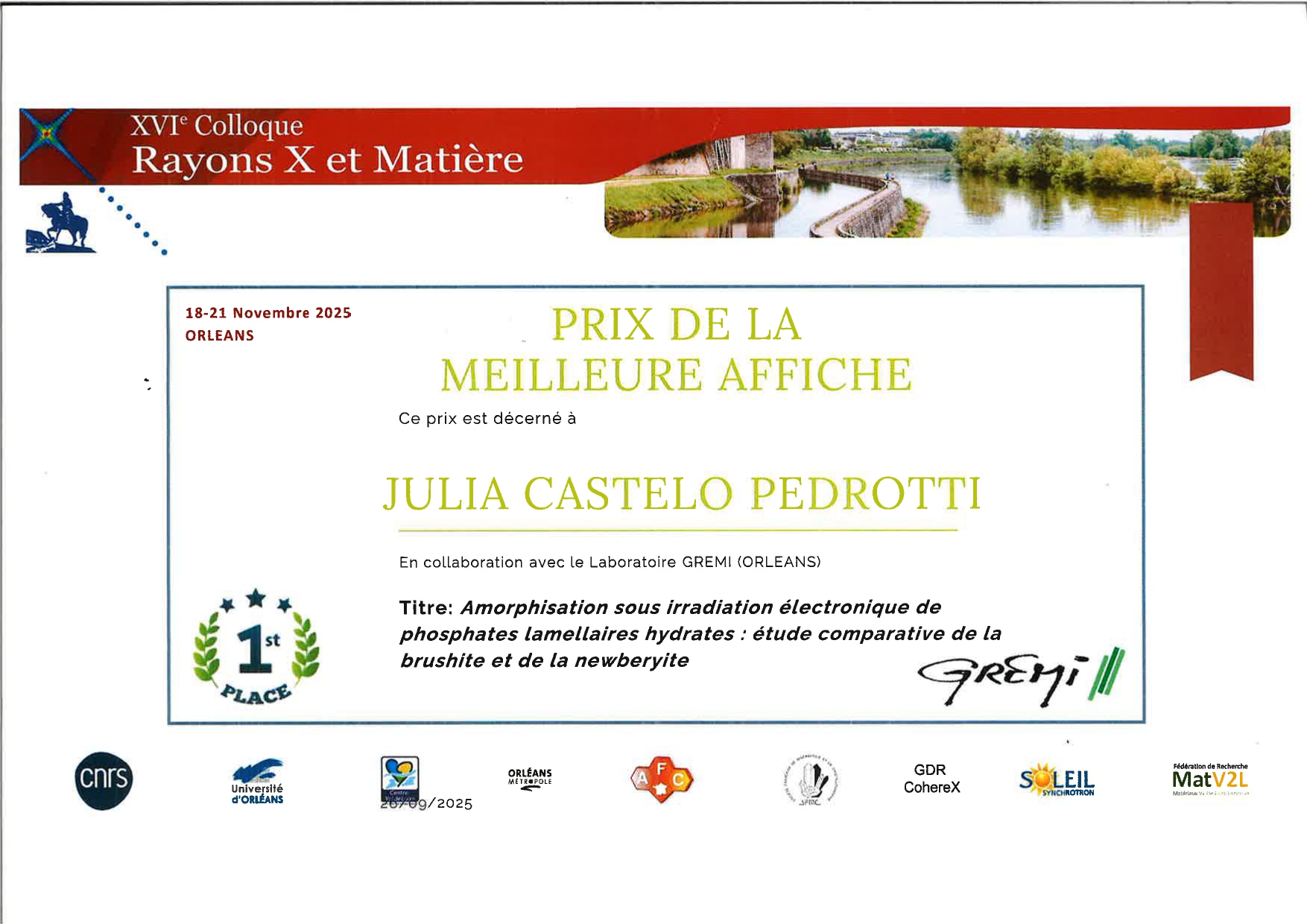 Du 18 au 21 novembre 2025 a eu lieu le XVI colloque Rayons X et Matière à Orléans.