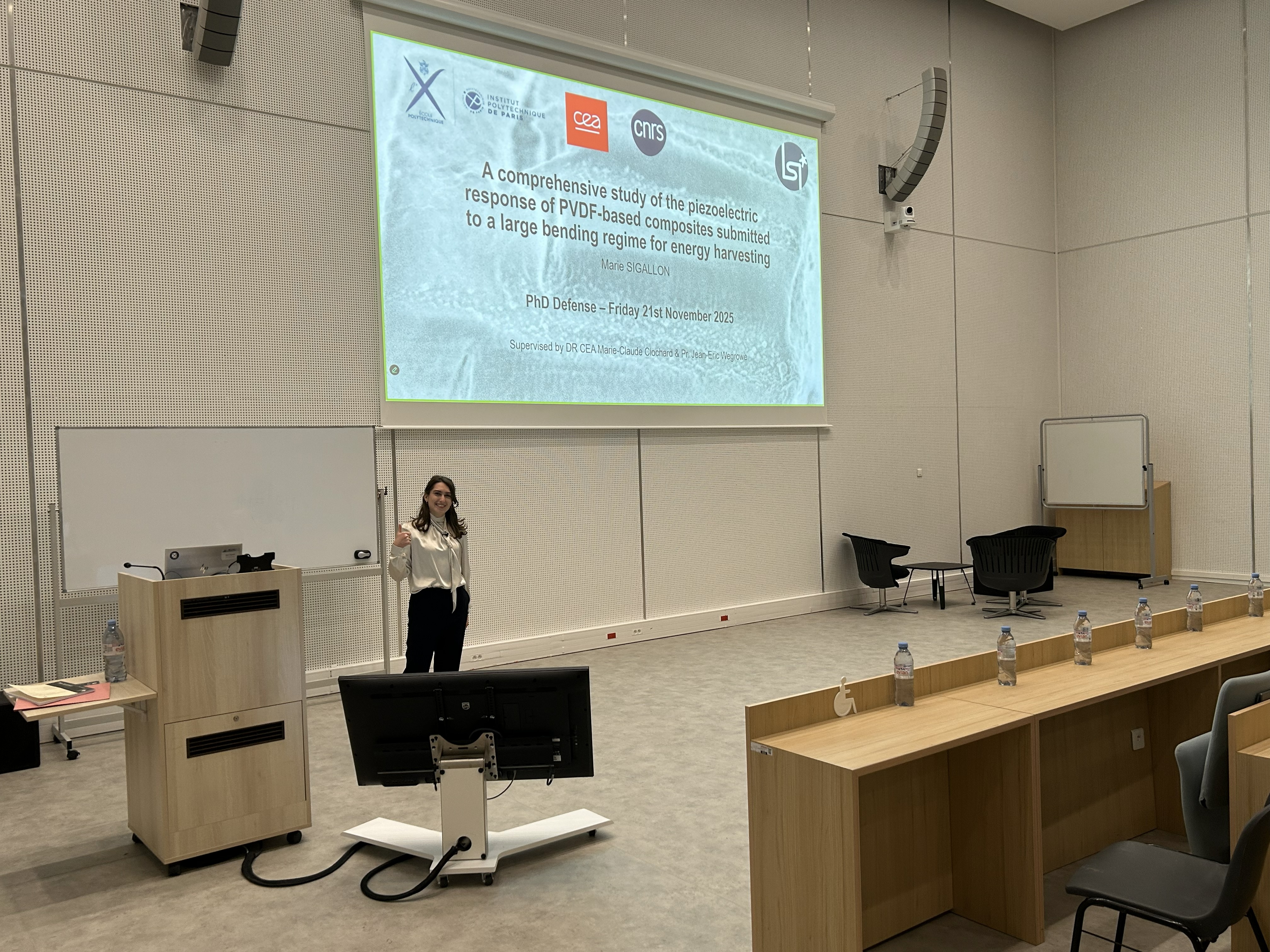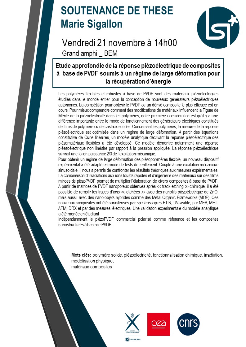 Thèse, dont l'intitulé est l"Etude approfondie de la réponse piézoélectrique de composites à base de PVDF soumis à un régime de large déformation pour la récupération d’énergie"